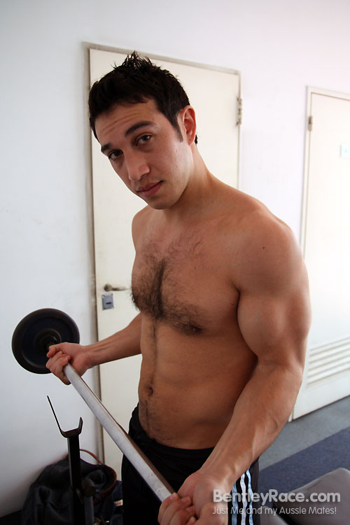 I finally bought some weights and a bench last week and muscle boy Marco was the first to try them out. Marco is such a sexy guy! We always have a lot of fun when he comes round to hang out. Now let’s see how often those weights appear in the shoots…. my bet is it will be every time of one my gym buddies drop by.